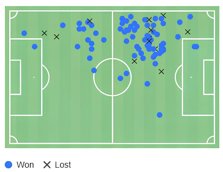 Here are the same metrics for Tierney from Sunday’s 1-0 victory over St. Mirren: