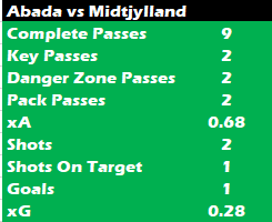 We saw this with Abada. He only had possession 17 times, and in the 11 times he did not lose possession he achieved: