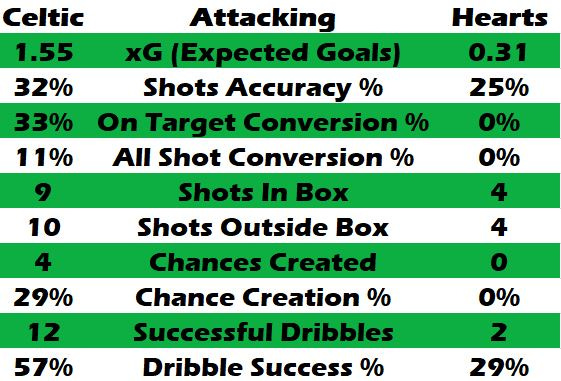 It appeared that Cathro had gone back to basics and worked on defensive shape, which they largely maintained with discipline. Had it not been for Celtic indiscipline, Hearts may not have registered any efforts in that sterile first half. But 3 free kicks yielded 3 long range low probability efforts.