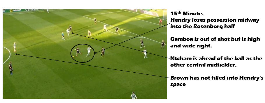 Hendry lost possession with his right sided full back Gamboa high up the park, and neither Ntcham nor Brown in a position to cover. It was a poor decision to advance that far forward.