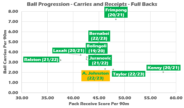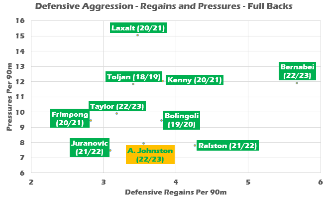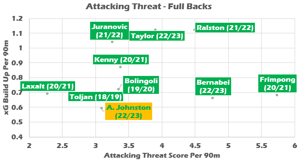 Johnston is more Laxalt or Toljan than Frimpong or even 21/22 Ralston. Contribution in the final third does not seem to be Johnston’s strength.