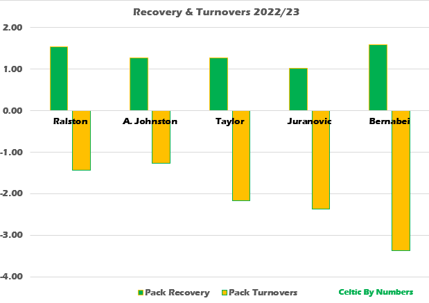 Note that Celtic players this season will have more turnovers than recoveries generally again because of having overwhelmingly more possession.