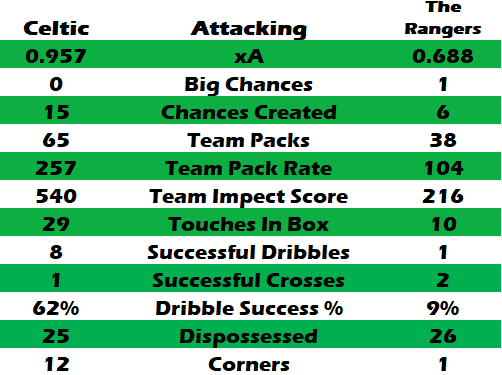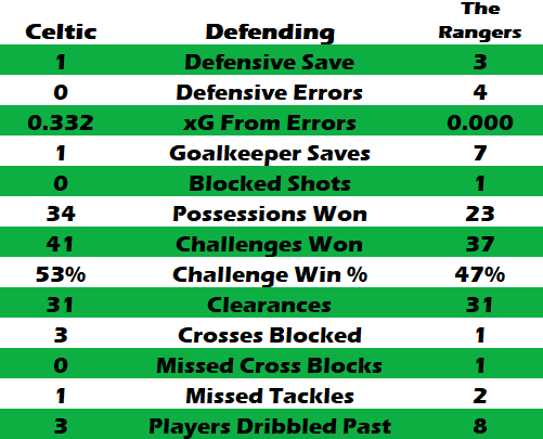 Concerning possessions in the box, Celtic’s 29 was their 3rd best of the season in Scotland. Only Kilmarnock (13) have bested the 10 by the home side here.