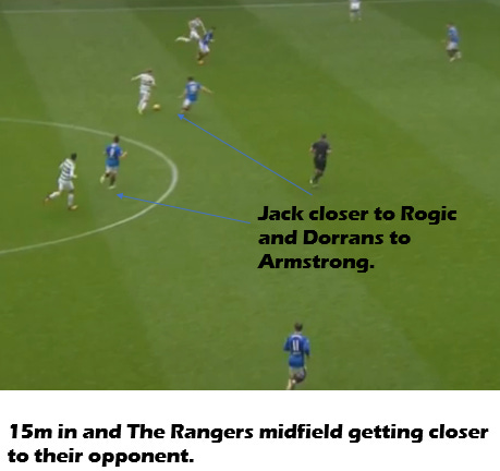Goals change games as any football cliché aficionado knows. Celtic came out aggressively for the second half. Griffiths had a shot saved on the line by Jack, and with Sinclair starting to take on Tavernier, and Armstrong continuing to find passes between the lines, it was all Celtic pressure for the first 5 minutes.