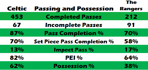 Celtic completed passing was their lowest of the season domestically, and 87% pass completion is around 3% below par for the Champions.