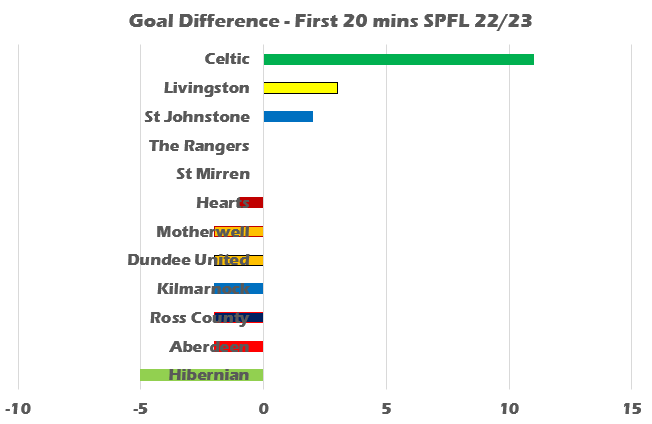 Celtic are clear standouts with a net goal difference of +11 goals in the opening period of the 15 matches played so far. Indeed, they have only conceded one goal in this period – to Dundee United in early November. The importance of this is clear as that match required two strikes in added time to come back and secure a win.