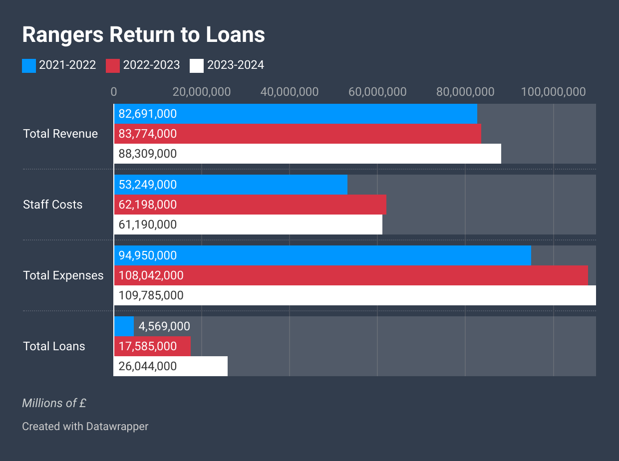 Rangers 2.0 have been very poorly run since they denied Celtic of 10-in-a-row during the 2020-2021 season. Yes, there was the run to the 2021-2022 Europa League Final, but their performance levels within the Scottish domestic game have badly lagged the amounts they have spent on wages. In addition, the two seasons which saw them make that Europa League Final run and the following one with group stage Champions League, had the club’s finances on a potential path to sustainability. Instead, spending was ramped to even exceed that of Celtic, with investor loans piling back up.