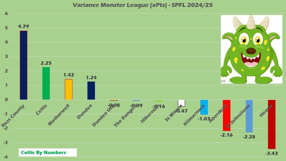 As for Celtic, they are on the wrong side of outcomes this season, in addition to the issues of finishing and keeper play above. Recruitment in January would be crucial you’d think, albeit the variance Gods care little.