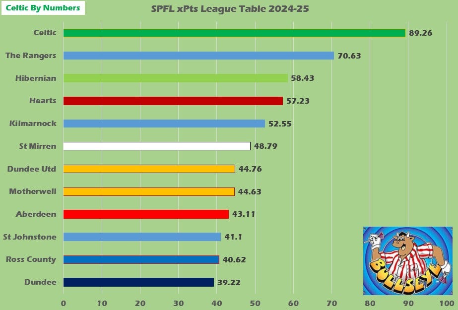 Celtic’s underlying numbers SHOULD have led to a quite comfortable lead by this stage. But of course, it hasn’t and we will dive into that in a bit.