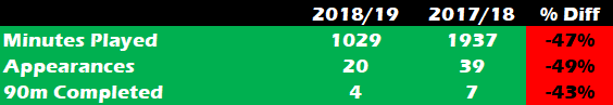 Whilst his issues this season may have been distinct, there is nevertheless a trend of unavailability over the last three seasons. He has appeared 37, 39 and 20 times over the last three campaigns but only 23 times lasted the full 90 minutes. 72 matches have been lost to injury and illness in three seasons. Apart from his recent travails, the injury gaps are short and frequent.