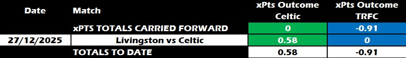 Expected Points Outcome: Celtic +0.69 xPts