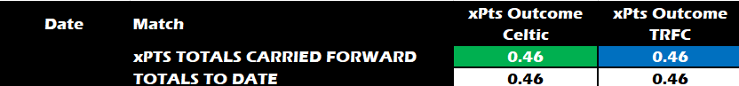 Celtic have 0.46 MORE expected points, and The Rangers also have 0.46 MORE due to the impact of Honest Mistakes. So, no “advantage” for either team.
