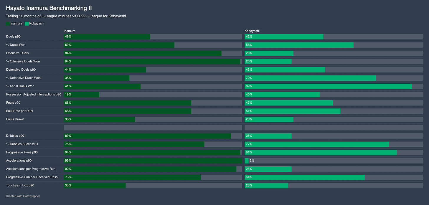 But Inamura also happens to be reasonably quick, fast, and of a decent height. Yes, he is relatively slight in physique, so no one is going to confuse him with Kyle Vassell or other brickhouse-adjacent players Celtic often face domestically.