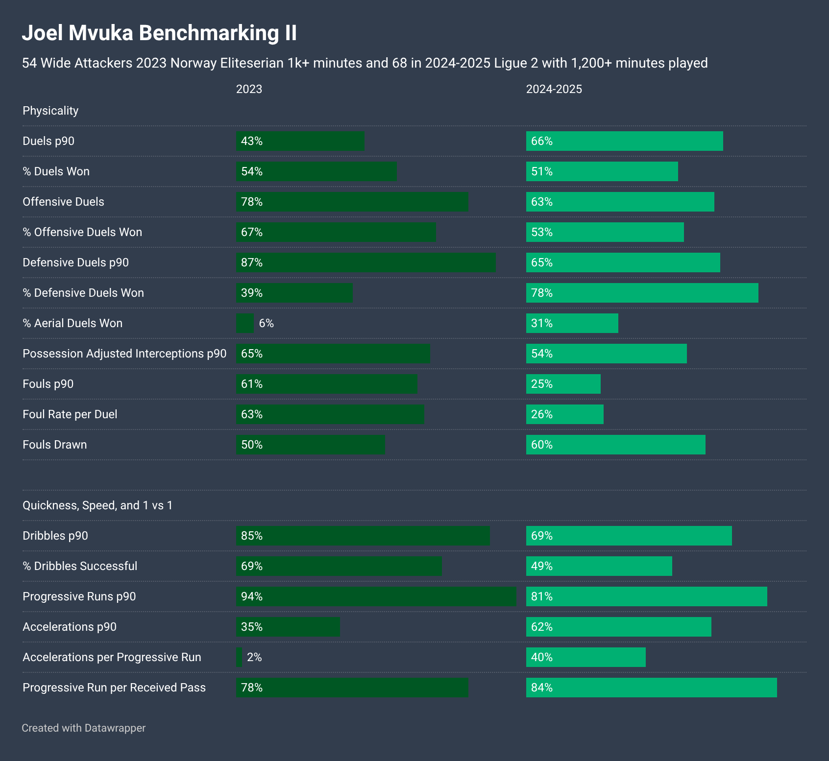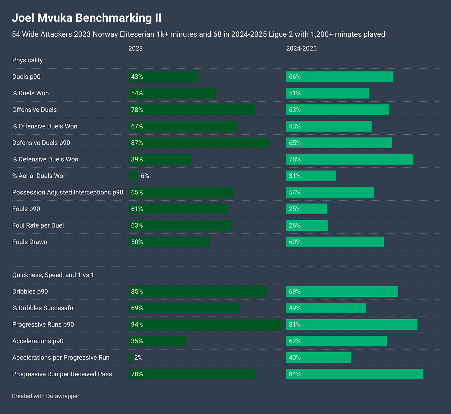Mvuka rates as a good and active athlete who generally holds is own physically, with aerial duels one area of weakness. He was a productive ball progressor via carries during both seasons playing on dominant teams.