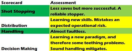 His yearend performance is therefore more impressive than I anticipated in January. My confirmation bias when starting this article was that I would be writing about succession planning and the need to have a new ’keeper put pressure on him. Instead, Gordon’s performance rough edges are a direct result of managerial instructions. His test for next season is to absorb the learning whilst maintaining exceptionally consistent overall performances.
