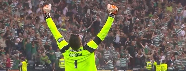 In the 1-1 derby match against The Rangers, Gordon mitigated defensive slackness with 3 key saves.