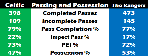 For the third Derby running, Celtic had the minority of possession. This, in itself, is not necessarily a worry. However, I’d like to see a greater degree of game control.