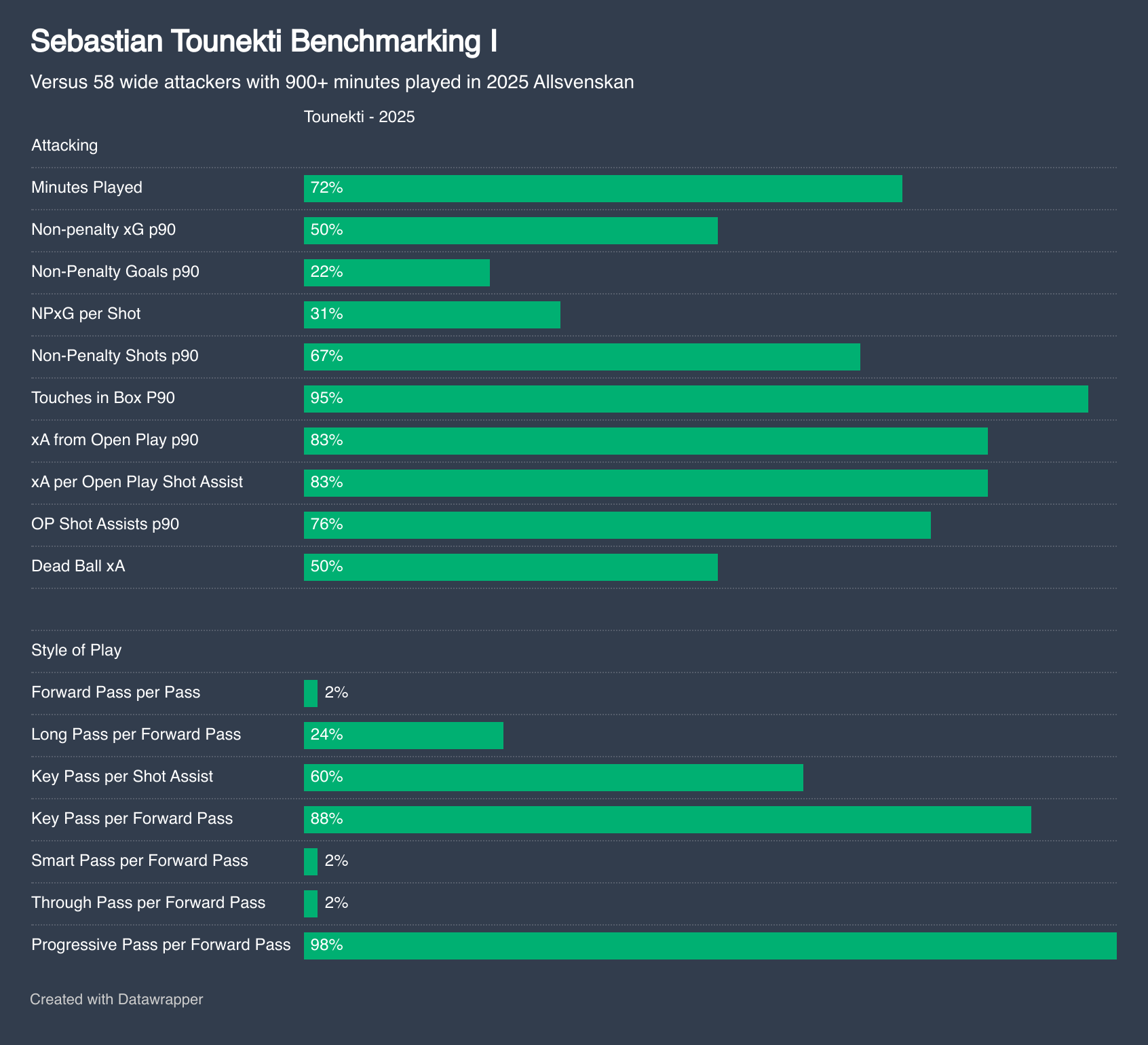 In some respects, his profile reminds me of Nygren’s in Denmark, in that Tounekti played in a Hammerby side that was reasonably adjacent to how Celtic play. That is not inherently a good or bad factor, but it does introduce important context for analyzing his first three graphics within this benchmarking exercise.
