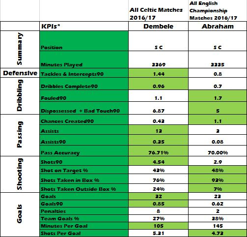 Dembele 2016/17 All Competitions vs Abraham 2016/17 English Championship