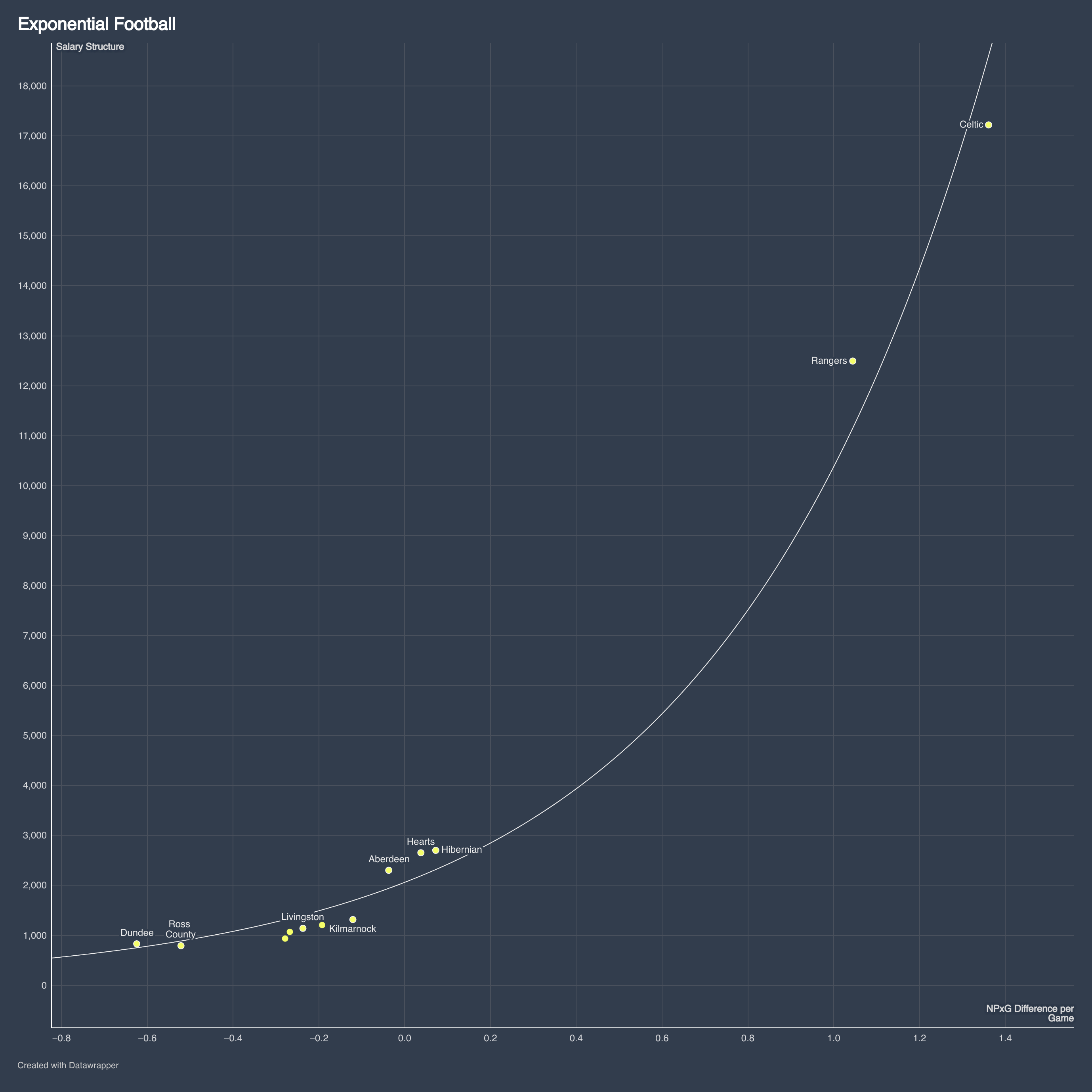 From a top-down perspective, the amount clubs spend on player wages remains paramount, and a basis for a performance baseline. An easy way to think about that is a non-penalty xG difference table. From there, performance attribution enters the much more complicated picture.