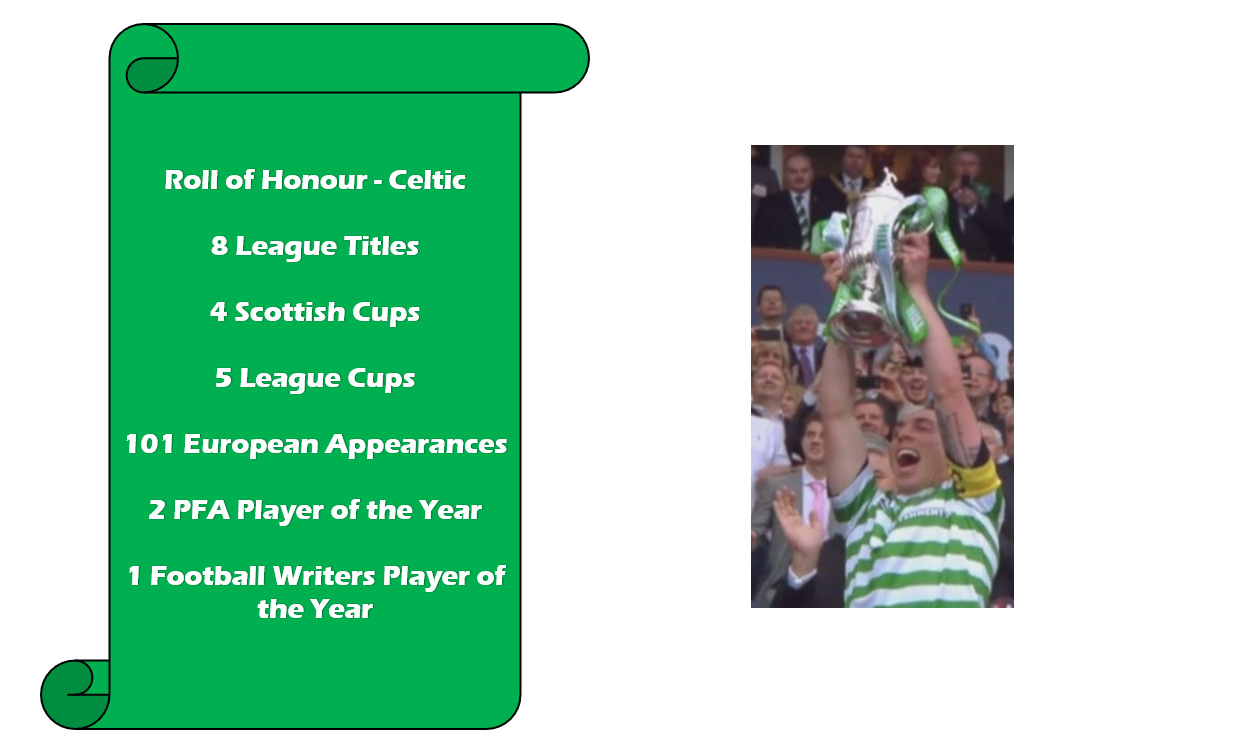 He stands alone, however, in second place as the most decorated captain in Celtic history. Whilst Billy McNeill’s 23 trophies will likely never be reached, Brown is up to 15 with the third placed captains being on 7. He has won 17 trophies in his 11 ½ years at Celtic.