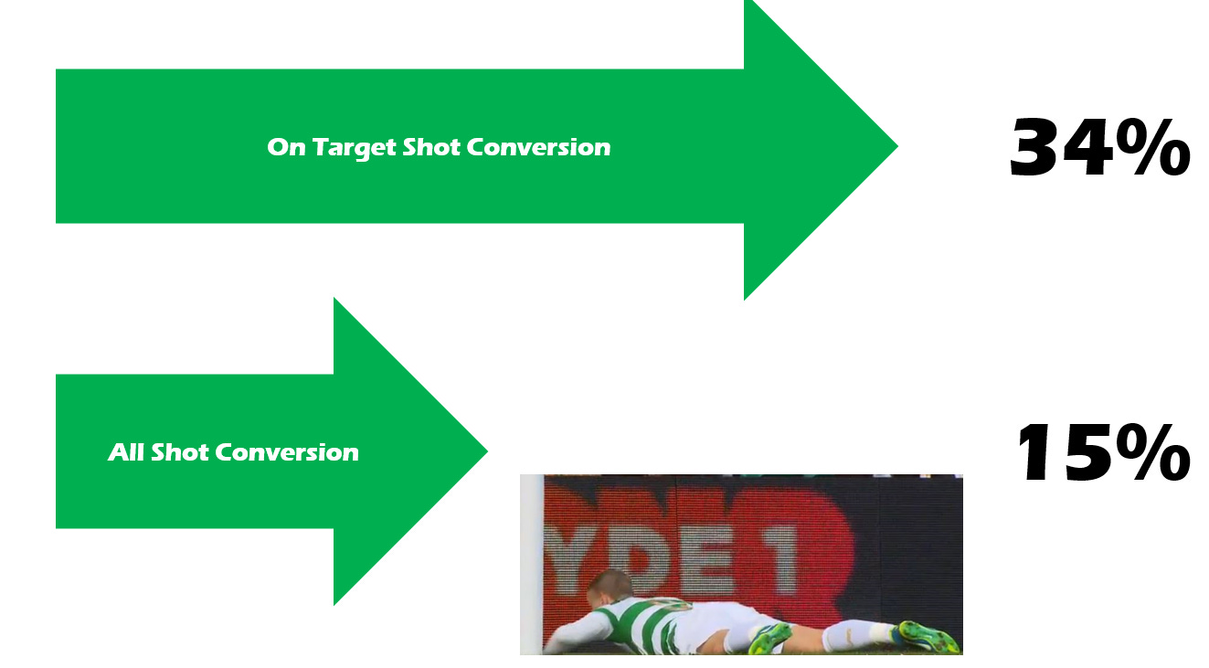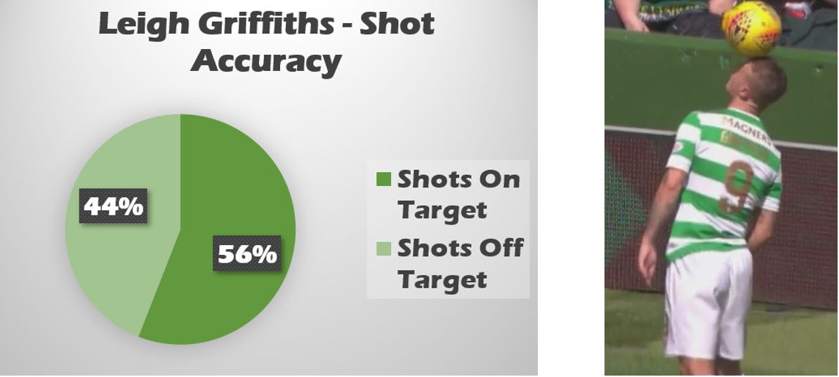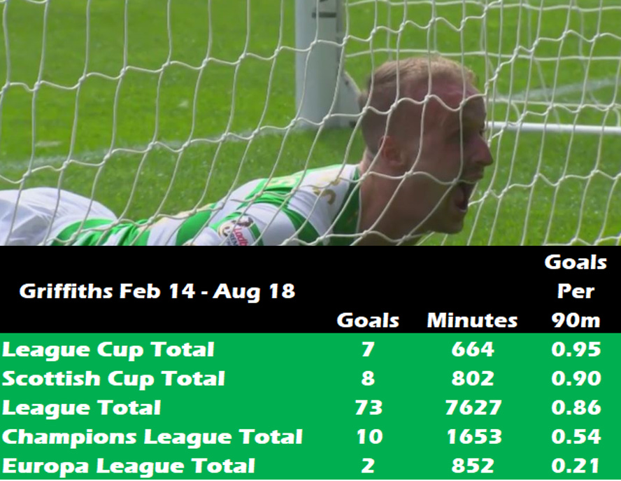 Griffiths converts 15% of all his shots. Celtic as a team are only managing 11% this season.